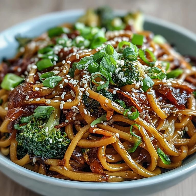 Save to Pinterest There's something about the sizzle of noodles hitting a hot wok that instantly transports me back to a rainy Tuesday evening when my neighbor dropped off a container of homemade teriyaki noodles. One bite and I was hooked, but I wanted to understand the balance myself—that perfect tension between sweet, salty, and nutty that makes you reach for another forkful before you've even finished chewing. Now this bowl has become my go-to when I need something that feels like a hug but tastes restaurant-quality.