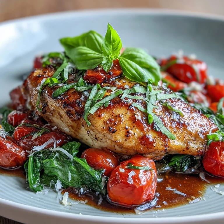 Save to Pinterest There's something about the smell of balsamic vinegar hitting a hot pan that makes you pause mid-conversation. My roommate walked into the kitchen one weeknight while I was testing this recipe, and before I could even explain what I was making, she asked if we could just eat whatever that was. The chicken turned out so tender, the tomatoes had burst into this sweet glaze, and the spinach melted into everything like it was supposed to be there all along. That one-pan magic convinced me this dish deserved to become a regular in my rotation.