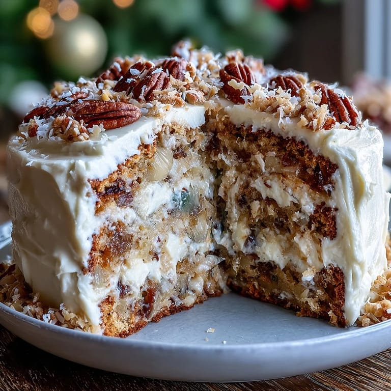 Save to Pinterest This cake is a crowd-pleaser that manages to be both cozy and exotic at the same time. Whether you are hosting a formal Christmas dinner or a casual holiday brunch, its vibrant texture and sophisticated flavor will leave your guests asking for the recipe. The addition of shredded coconut and the option for toasted nuts adds a delightful complexity to every bite.