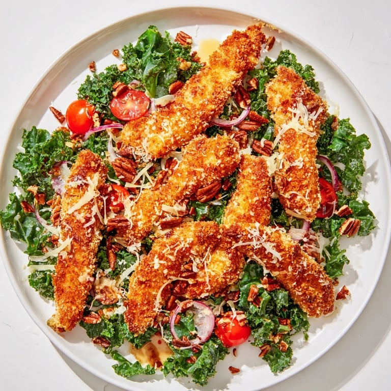Save to Pinterest My coworker brought this salad to a potluck once, and I watched everyone circle back for seconds. The crispy chicken looked incredible on top of the deep green kale, and when I asked her for the recipe, she laughed and said it was just "fried chicken on leaves." I made it that same weekend and realized why people kept coming back: the contrast between hot, crunchy chicken and cool, tangy greens is borderline addictive. Now it's my go-to whenever I want something filling but not heavy.