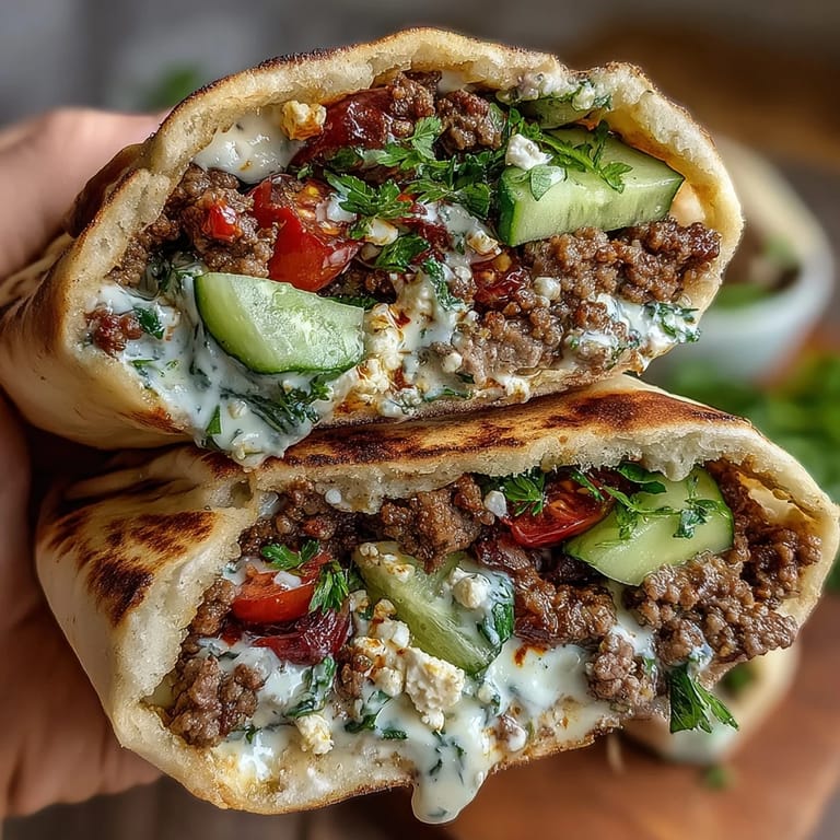 I made these for my book club once, setting out all the components so everyone could build their own, and watching people experiment with their ratios of sauce to beef to vegetables was oddly delightful. Someone loaded theirs with extra cucumber and barely any feta, another person went heavy on the yogurt sauce, and everyone ended up happy with their own creation. That's when I realized these pockets work because they're forgiving and fun, letting each person make them exactly how they want.