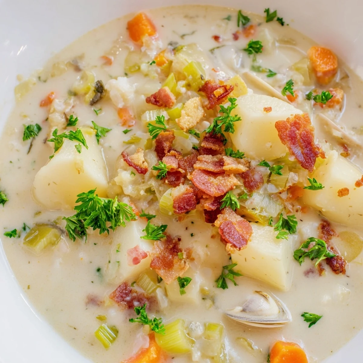 Save to Pinterest The first time I made New England clam chowder, I was standing in my kitchen on a gray October afternoon, phone propped against a cookbook, listening to my grandmother describe how she used to make it for my grandfather after he'd come back from the docks. She said the secret was patience—not rushing the clams, letting them steam just until they cracked open like they were ready to tell you something. I've made it dozens of times since, and that patience she talked about is still the thing that matters most.