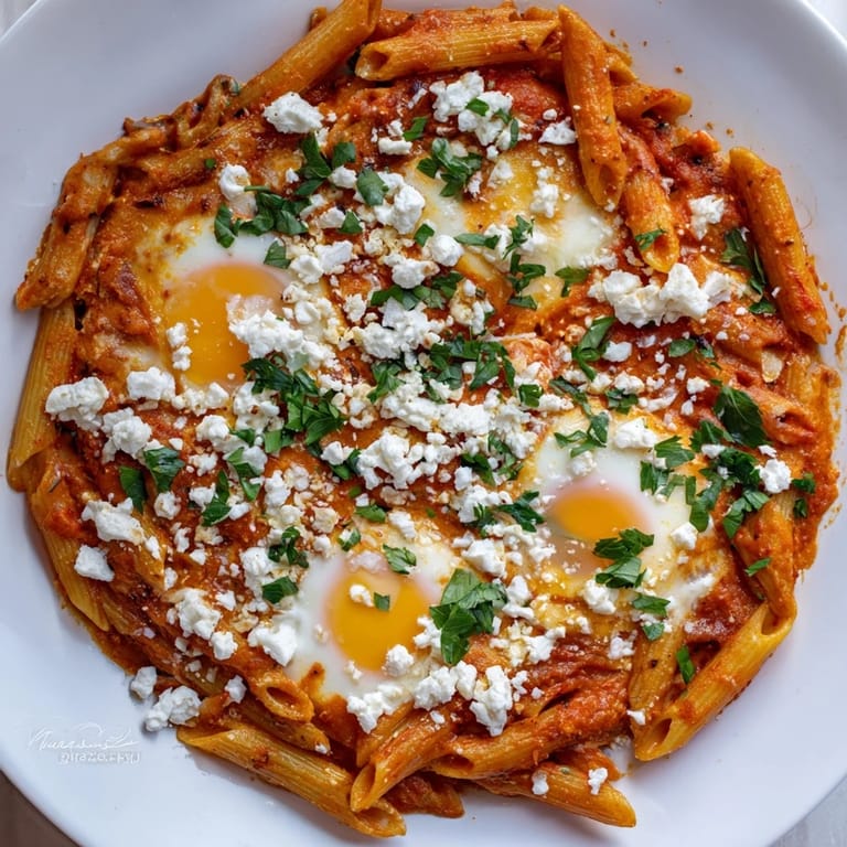 Save to Pinterest The first time I made shakshuka pasta was actually an accident. I had intended to make traditional shakshuka but realized too late I had no bread, only half a box of penne left in the pantry. The result was so comforting and satisfying that it became a regular weeknight rotation. Something about the way the sauce clings to each piece of pasta, with those velvety yolks mixing into everything, creates this incredibly rich experience that feels special even though it comes together in under thirty minutes.