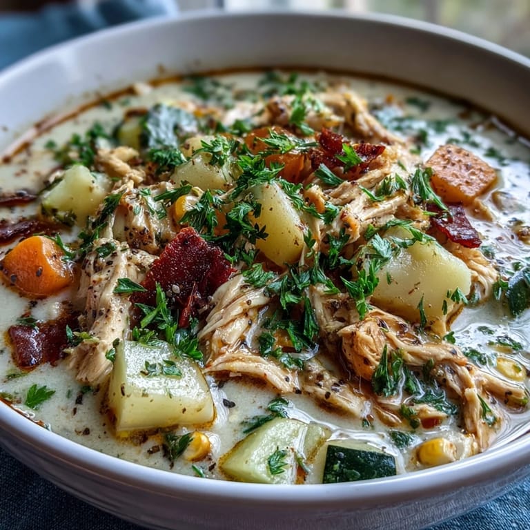 Save to Pinterest There's something about the way a kitchen fills with warmth when a pot of soup starts simmering that makes everything feel right. I stumbled onto this ranch chicken veggie soup on one of those grey afternoons when I wanted comfort food but didn't want to spend hours cooking, and somehow it became the dish I make whenever someone needs feeding. The combination of creamy broth, tender chicken, and vegetables that still have a little bite to them hits differently than other soups I've made—it's filling without being heavy, and honestly, it tastes even better the next day.