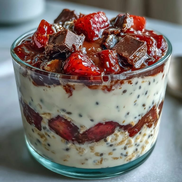 Save to Pinterest The magic of overnight oats lies in their simplicity and versatility. As the oats soak overnight in milk and yogurt, they transform into a creamy, pudding-like texture that's both satisfying and nourishing. The chia seeds add extra nutrition and help create that perfect thick consistency, while the strawberries and chocolate chunks turn this simple breakfast into something truly special. Whether you enjoy it straight from the fridge or let it come to room temperature, each spoonful delivers layers of flavor and texture that will make you excited to start your day.