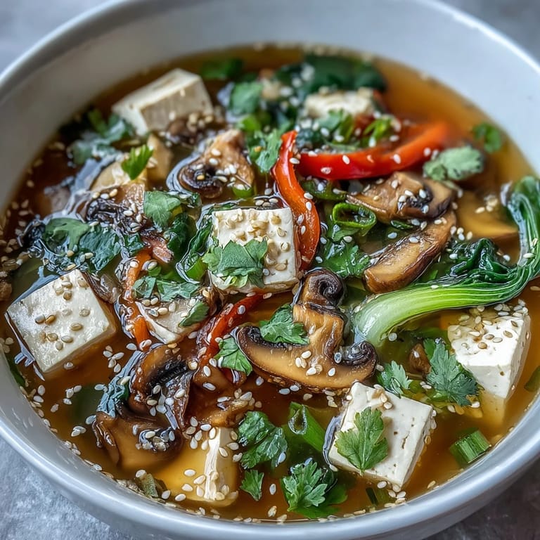 Save to Pinterest My neighbor stopped by on a rainy Tuesday with leftover silken tofu from her market run, and we ended up making this soup together just to use it up. What started as a casual fix-it moment turned into something I craved all winter—the kind of dish that tastes light but somehow fills you up completely. There's something about how the delicate tofu floats in that ginger-scented broth that makes you slow down and actually taste each spoonful. I've made it dozens of times since, sometimes with whatever vegetables I had on hand, and it never disappointed. It became the soup I reach for when I need comfort without heaviness.
