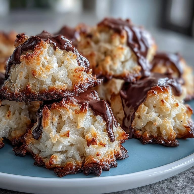 Save to Pinterest There's something about sitting down with one of these macaroons—that moment where the chewy coconut gives way between your teeth and then the dark chocolate hits—that transforms a simple afternoon snack into something almost meditative. My nephew now asks for these by name, which is the highest compliment any cook can receive from a picky eight-year-old.