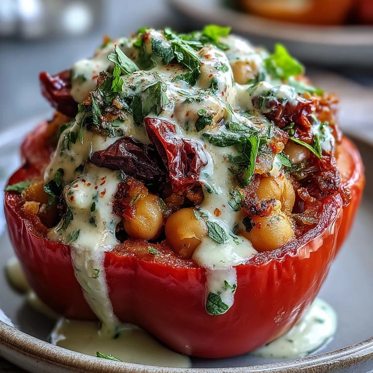 I made these for my brother's birthday dinner last spring, and he actually set down his fork between bites to compliment the sauce, which felt like a small victory for plant-based cooking. The peppers had just the right amount of give to them, that perfect moment between cooked through and still holding their structure, and the tahini sauce pooled in the bottom of each one like liquid gold. That's when I realized this wasn't just a weeknight dinner recipe, it was something I'd come back to again and again.