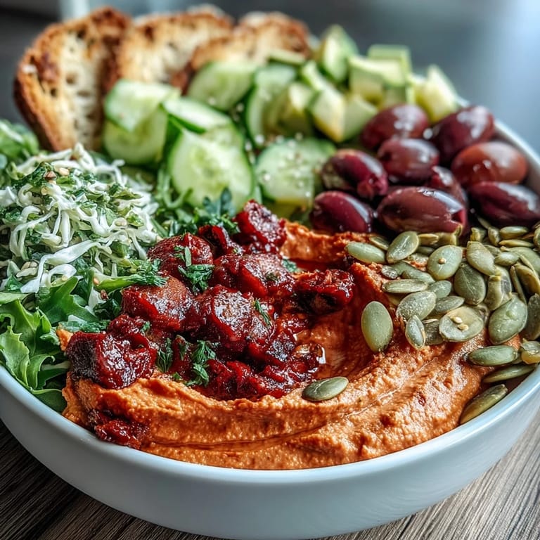 Save to Pinterest These Vegan Roasted Red Pepper Hummus Buddha Bowls represent the perfect intersection of nutrition, flavor, and visual appeal. Whether you're an experienced plant-based eater or simply looking to incorporate more vegetables into your diet, these colorful bowls offer a satisfying way to nourish your body. The combination of protein-rich hummus, fiber-filled vegetables, and wholesome grains creates a balanced meal that will keep you energized throughout your day. Enjoy the process of creating these beautiful bowls, and don't be surprised if you find yourself making them again and again!