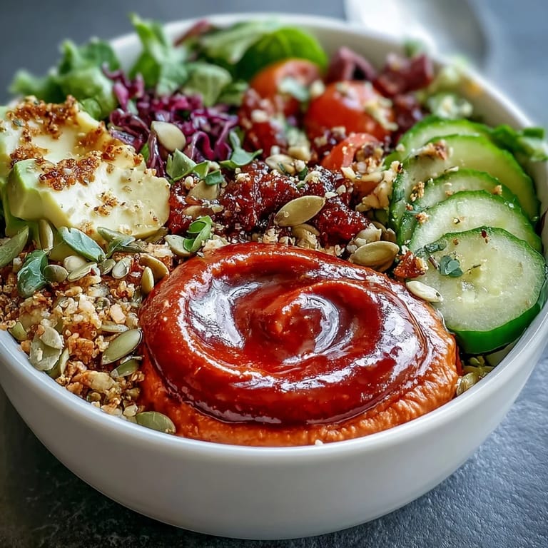 This flexible recipe welcomes many adaptations. For a higher protein version, add roasted chickpeas or tofu cubes. In summer, try adding grilled zucchini or yellow squash. For additional crunch, sprinkle with crispy roasted chickpeas instead of pumpkin seeds. If you're short on time, use store-bought hummus and jarred roasted peppers - just add a bit of smoked paprika to capture that smoky flavor. For a grain-free option, replace quinoa with cauliflower rice.